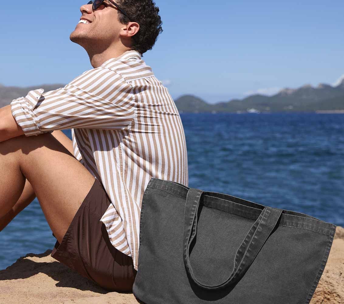 Torba w stylu vintage, spierana po uszyciu, każdy egzemplarz może się trochę różnić. Uszyta z grubego płótna bawełnianego wyprodukowanego z certyfikowanej bawełny z recyklingu. Torba ma dwa uchwyty średniej długości, pozwalające na noszenie jej w ręku lub na ramieniu. Owalne dno zwiększa pojemność torby, a podwójne szwy wzmacniają jej najważniejsze punkty. Producent, brytyjska marka Westford Mill®, pozostawił komorę torby bez zapięcia, zapewniając łatwy dostęp do wnętrza.