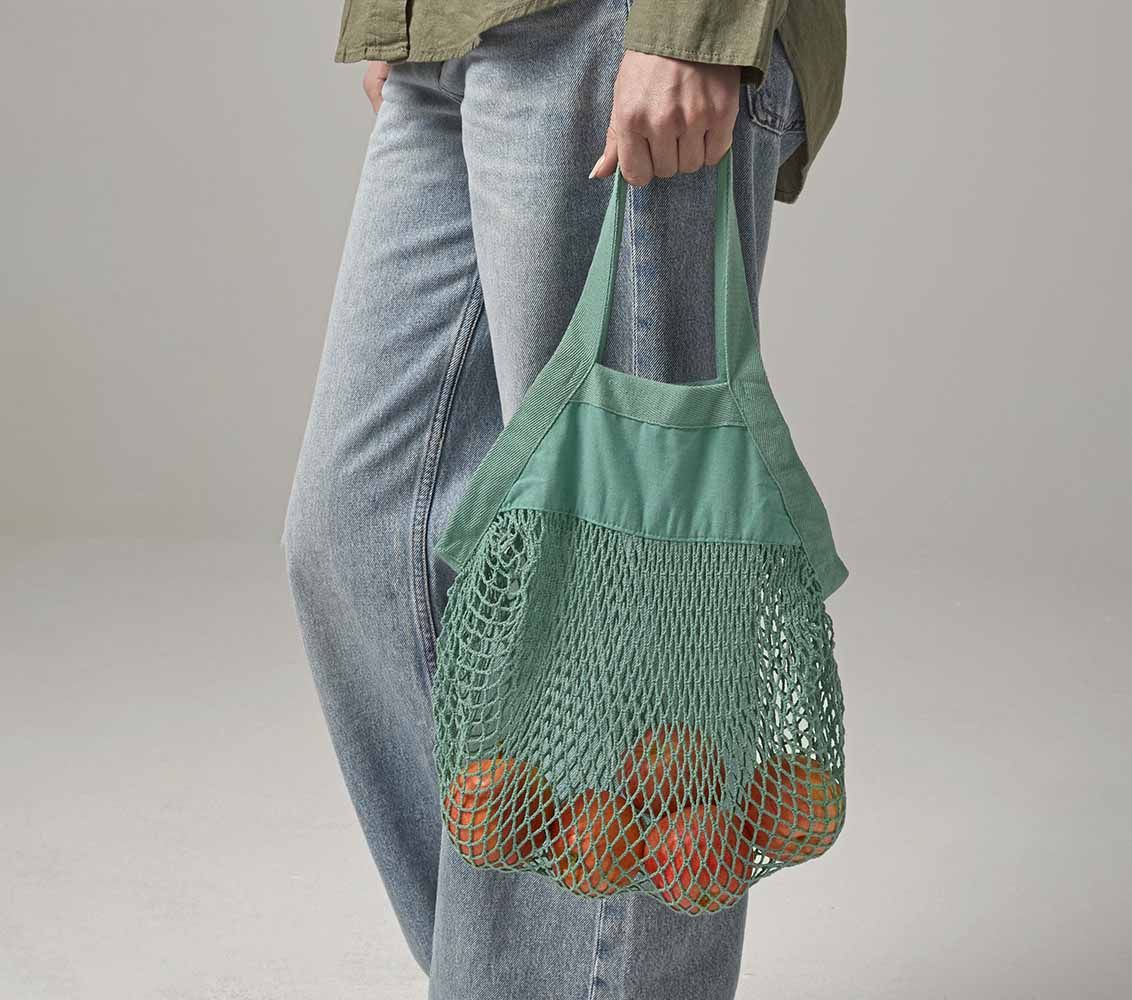 Certyfikowana bawełna organiczna posłużyła brytyjskiej marce Westford Mill® do wykonania tej ekologicznej siatki na zakupy. Dwa krótkie uchwyty przystosowano do przenoszenia torby w ręku. Jej pojemność pozwala na spakowanie do siedmiu litrów zakupów o wadze nie przekraczającej sześciu kilogramów. Część siatkowa ma naturalnie elastyczny splot, który dobrze dopasowuje się do zawartości torby. Wybór pastelowych kolorów świetnie pasuje do ekologicznej formy.