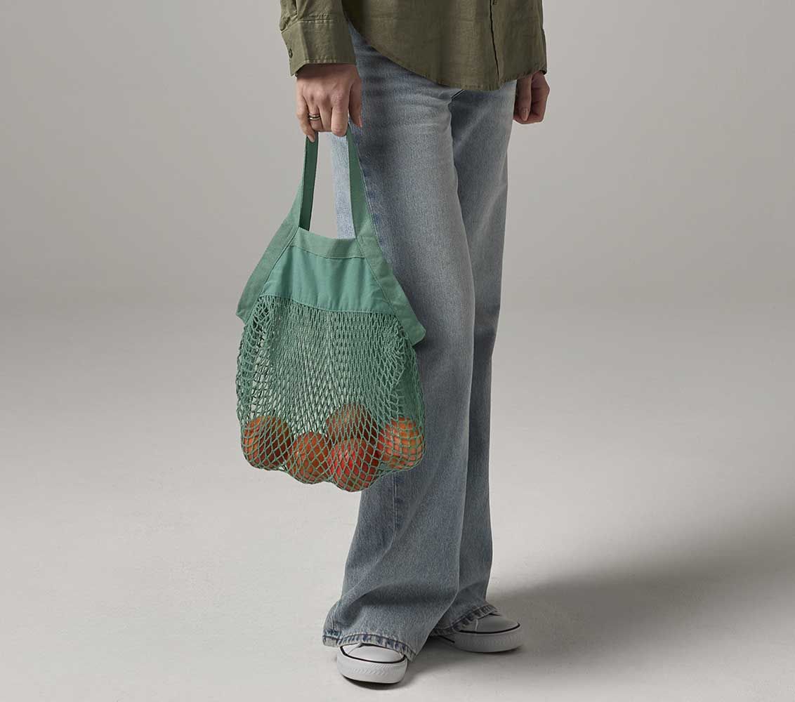 Certyfikowana bawełna organiczna posłużyła brytyjskiej marce Westford Mill® do wykonania tej ekologicznej siatki na zakupy. Dwa krótkie uchwyty przystosowano do przenoszenia torby w ręku. Jej pojemność pozwala na spakowanie do siedmiu litrów zakupów o wadze nie przekraczającej sześciu kilogramów. Część siatkowa ma naturalnie elastyczny splot, który dobrze dopasowuje się do zawartości torby. Wybór pastelowych kolorów świetnie pasuje do ekologicznej formy.