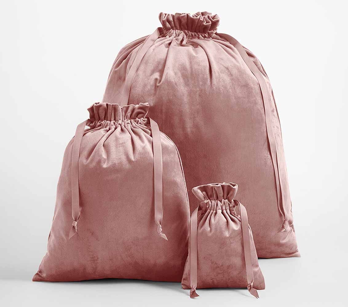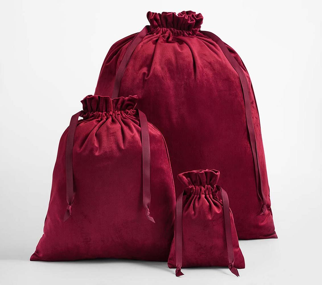 Aksamitny woreczek BAGBASE® z tasiemką rypsową. Góra woreczka jest zaciągana dwustronnie podwójnymi tasiemkami. Wiele możliwych zastosowań od przechowywania drobnych, wartościowych przedmiotów po pakowanie prezentów. Woreczek jest dostępny w trzech rozmiarach, to jest strona największego rozmiaru L.