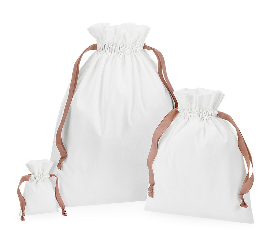Woreczek z tasiemkami brytyjskiej marki WESTFORD MILL® uszyty ze szczotkowanej bawełny. Tasiemki mają kontrastowy kolor i szerokość większą od standardowej, są podwójne i zaciągane dwustronnie. Ten woreczek doskonale nadaje się do pakowania prezentów, a po ich rozpakowaniu znajdzie wiele innych zastosowań w domu obdarowanego. Dostępne są trzy wielkości, to jest strona największego rozmiaru.