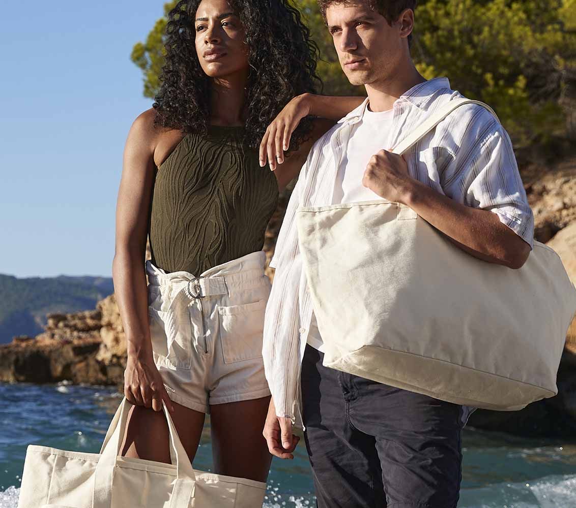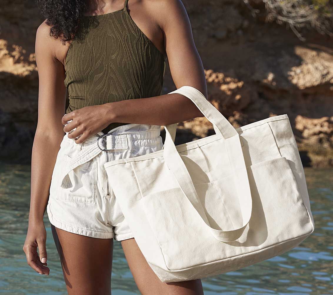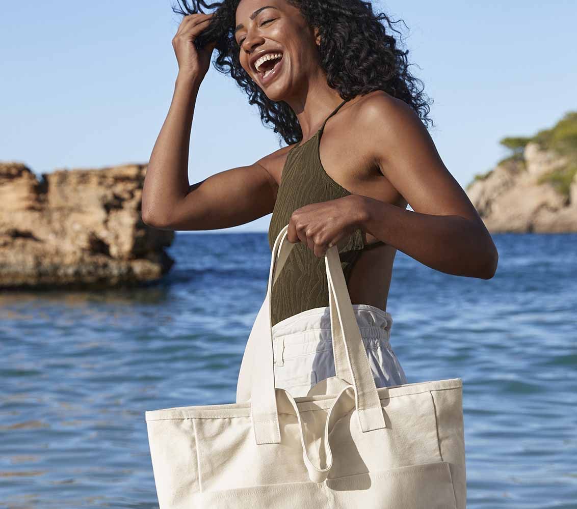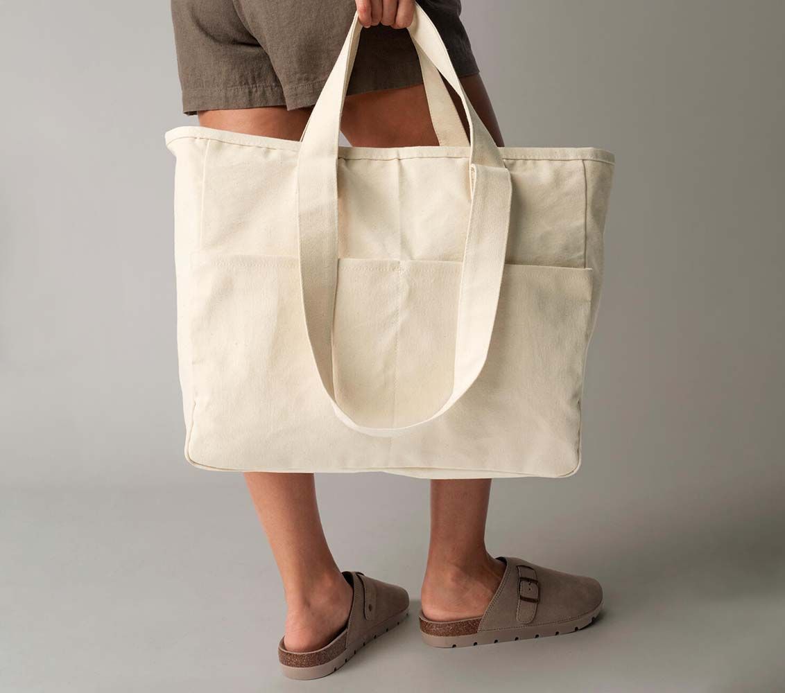 Duża torba na zakupy lub na plażę brytyjskiej marki WESTFORD MILL® uszyta z bardzo grubego płótna bawełnianego. Główna przestrzeń ładunkowa jest zapinana na nylonowy zamek błyskawiczny z uchwytem wykonanym z tego samego płótna. Tym samym płótnem została również obszyta górna krawędź torby. Dwie wsuwane, zewnętrzne kieszenie zapewniają szybki dostęp do niezbędnych drobiazgów, a dwie pary uszu dają wybór wygodnego noszenia torby w ręku lub na ramieniu. Dostępne są uniwersalne wersje kolorystyczne.