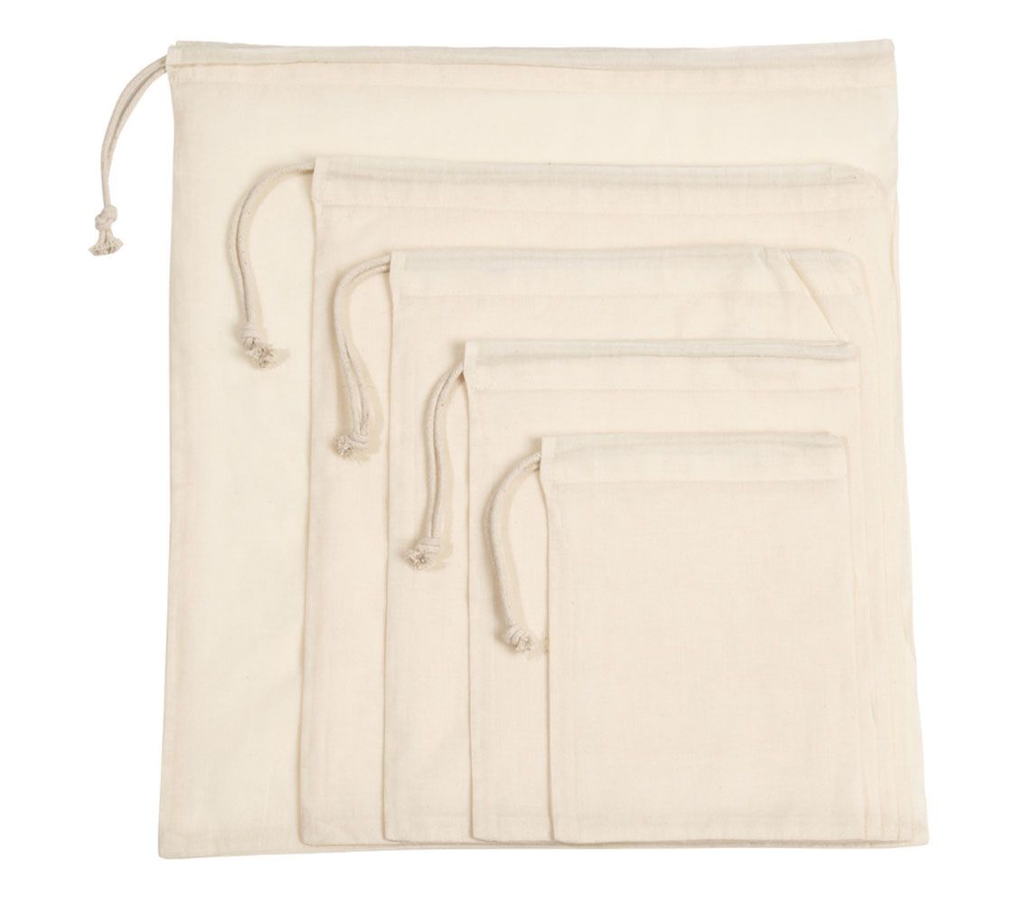 Organiczny woreczek płócienny francuskiej marki KIMOOD® uszyty z bawełny certyfikowanej przez Global Organic Textile Standard® (GOTS). Górna krawędź jest z jednej strony zaciągana i, w miarę potrzeby, wiązana sznurkiem. Worek jest oferowany w pięciu rozmiarach, to jest strona produktu w średnim rozmiarze.