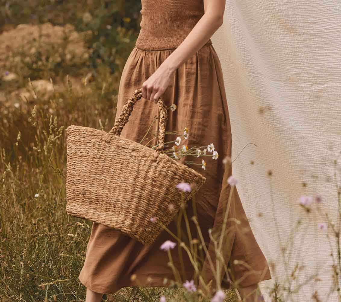 Ręcznie pleciony koszyk z kolekcji KIMOOD® francuskiej marki Kariban® wykonany z włókien powstałych z wodorostów, wewnętrznie wykończony tkaną wyściółką. Wyściółka jest ściągana sznurkiem, dzięki czemu zwartość koszyka jest zamknięta i zabezpieczona. Wyściółkę wykonano z włókien pochodzących z recyklingu. Ten produkt powstał w wyniku współpracy marki Kariban® z azjatycką organizacją wspierającą uczciwy handel w Bangladeszu (ECOTA). Dzięki projektowi Handloom recycled project udzielane jest wsparcie rodzinom zamieszkującym odległe wioski Bangladeszu, ze szczególnym uwzględnieniem wsparcia udzielanego kobietom z tych wiosek.