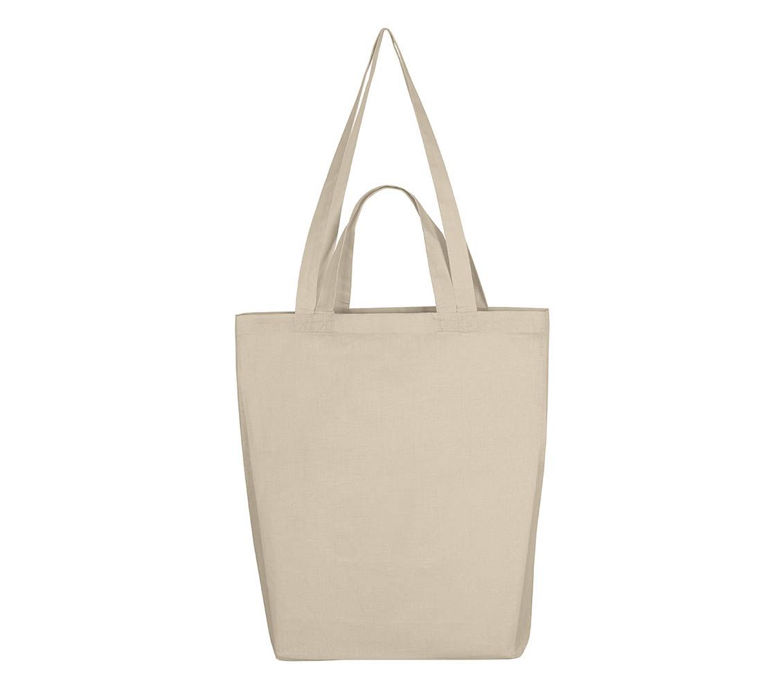 Praktyczna torba na zakupy z krótkimi i długimi uszami, do ręki i na ramię, na lżejsze i cięższe zakupy. Torba z kolekcji Bags marki SG Accessories®. Wszystkie uchwyty mają wzmacniane połączenie z główną częścią torby. Dno jest poszerzone dzięki czemu torba pomieści nie tylko jednodniowe zakupy. Torba jest uszyta z płótna bawełnianego średniej grubości.